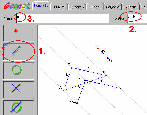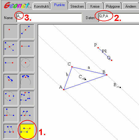 2. Konstuiere die Verschiebungspunkte mit dem Punktwerkzeug: Parallelogrammpunkt! (